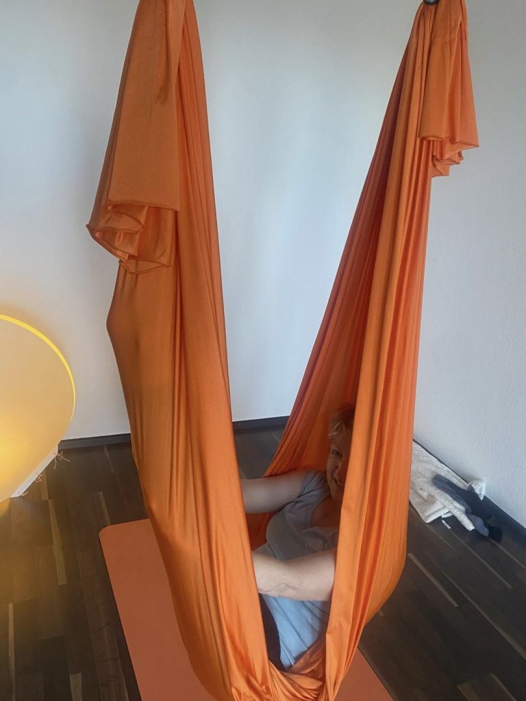 Viele, die Aerial Yin Yoga zum ersten Mal erleben, beschreiben diesen Moment sehr ähnlich. „Ich habe im Tuch einfach losgelassen … und irgendwann gelächelt.“ Oder: „Es war, als würde mein Körper sagen: Endlich Ruhe.“