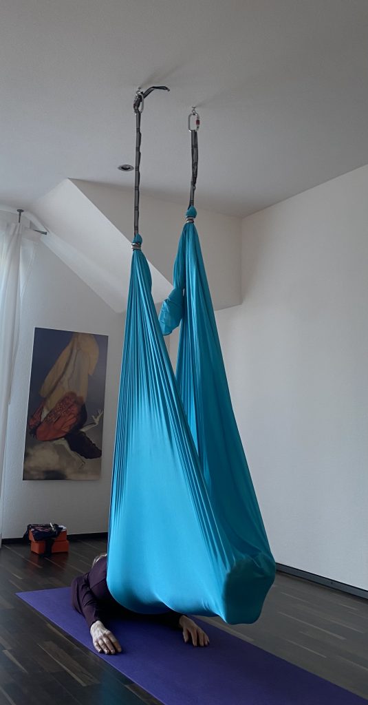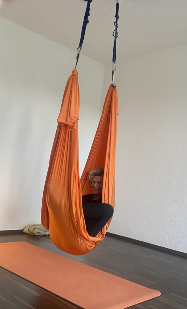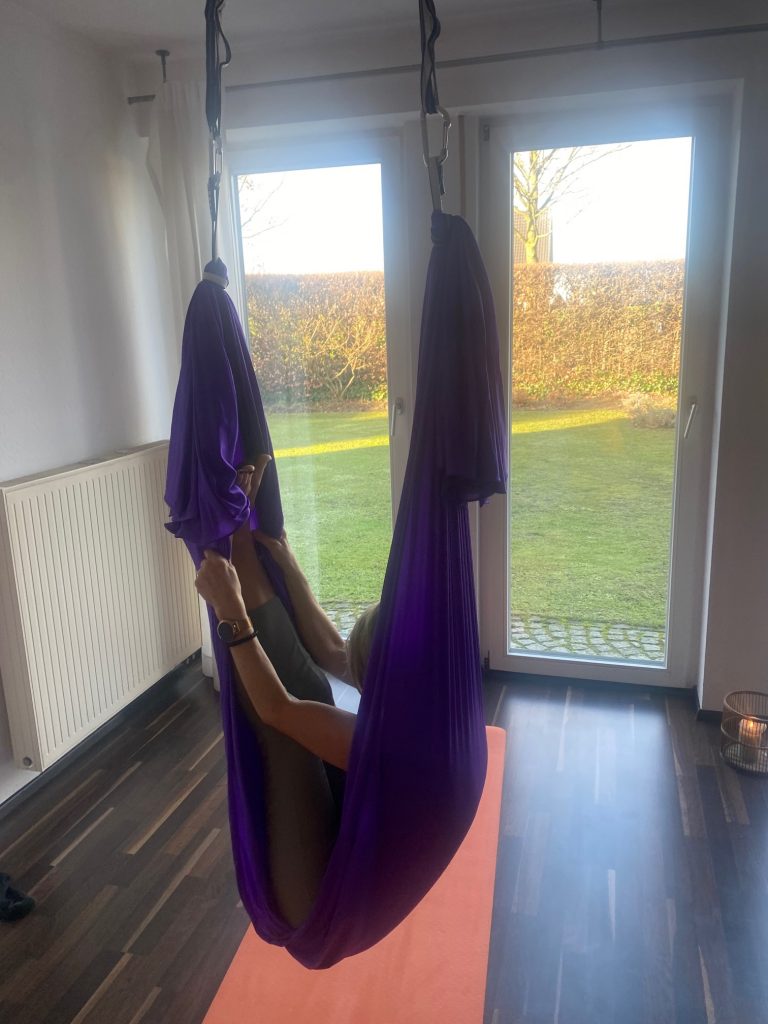 Aerial Yin Yoga fühlt sich an wie ein zartes Tiramisu: locker, leicht und wohltuend für Körper und Seele.